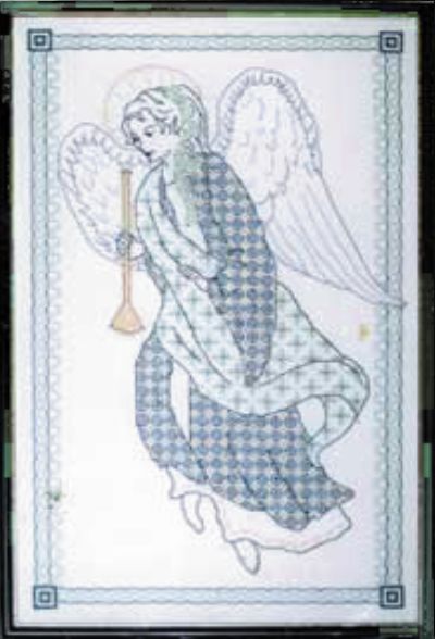 As you can see, the designer has changed from the normal black thread to restful greens and close shades. This is complimented with the fine use of Gold Filament.