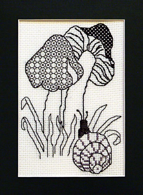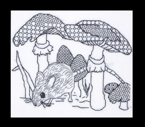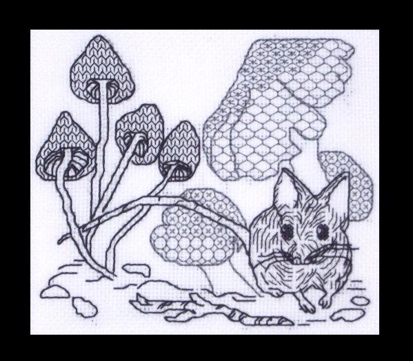Mice, Toadstools, Butterflies and Snails themed on Black Work