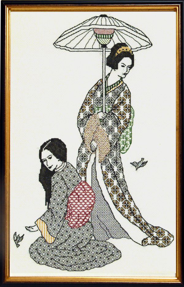 This delightful range of Blackwork by Catkin Embroidery is truly lovely. Each design encapture's the mood and feeling of the Orient, all have gold work and some have coloured threads to enhance the design. Whether you choose one or several, each design stands as a center piece that would grace any room in your home.