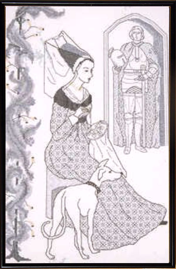 Catkin "The faithful hound has spotted the figure in the doorway, but the lady is still engrossed in her stitching""
