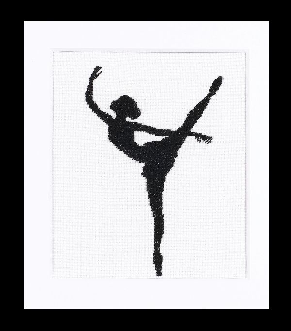 Stitched all in black & using petitpoint, This dancer makes a striking impression up on point.. 1 of a set of 3
