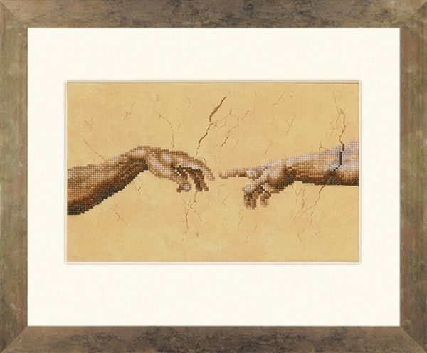 Recreated in Cross stitch, the most famous section of the Sistine Chapel depicting the Creation of Adam. Beautifully designed