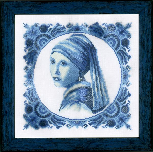 Lanarte Delft Girl with a Pearl 0158329 cross stitch is based on a timeless classic by Johannes Vermeer in 1665. Stitched in only shades of Blue this is a pretty design