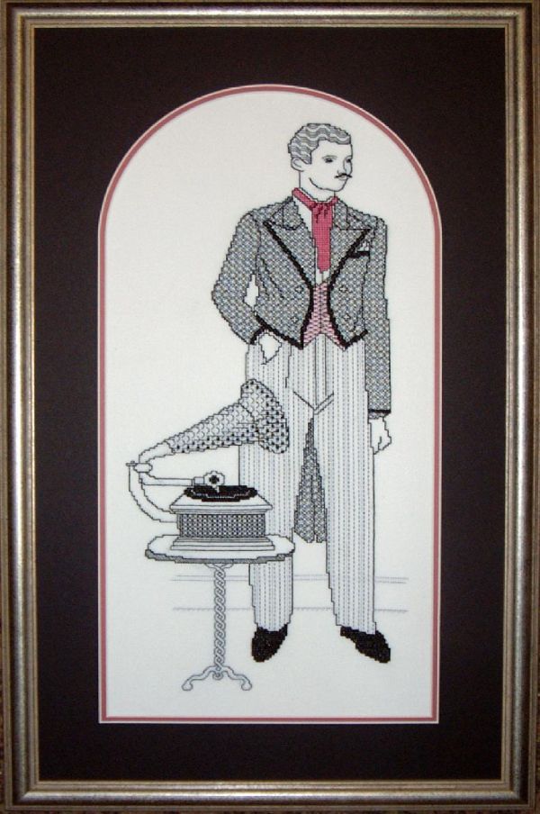 This is the first picture in a delightful pair. Stitched in black, with warm shades of deep plum for his cravat and waistcoat finished off with 4 pearl beads for buttons, Jasper looks every inch the gentleman he is. There is a very small amount of cross stitch in this design.